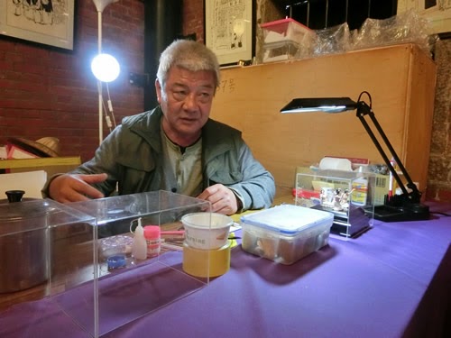 當時看展看著看著,看到徐師傅當然抓住機會與他聊聊天,不僅我坐著,當時還有來自北京嫁來台灣的新娘,在台北-北京兩頭住,她的兩個小孩因為幼稚園戶外教學,曾經來看過展,兩個小朋友看得津津有味,非要媽媽在元旦年假,再帶他們來看一次,也就是因為這原因,這位媽媽也來看,她說尤其看老北京人文特色這部分,百感交集,因為展場有些畫面,在現在北京都看不到了.