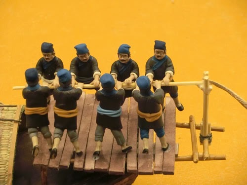 黃河上行駛的船,船得樣式在現代都難得一見,當時靠人力前後搖櫓,不然就是拉繩前進,船上的船員,前面使勁拉,後邊使勁推,都栩栩如生展現在眼前.