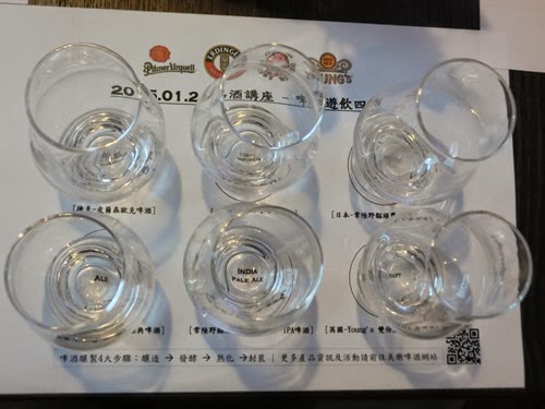 真是粉開心可以參加這次講座,因為在台灣最常喝得還是臺灣啤酒,這次可以一口氣喝6款不同啤酒,講座還沒開始,看到桌上擺著杯子,就讓人覺得新鮮,覺得興奮