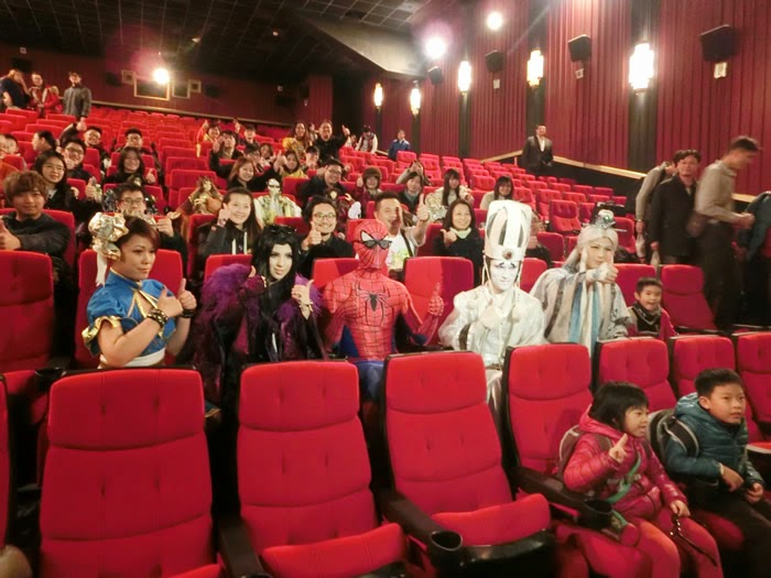 也有COSPLAY裝扮的朋友也一起看,還真是好久沒看布袋戲了,記得以前都是在廟埕前看不然就是在基隆市文化中心廣場看,哇~這次進電影院而且還是整場戴著3D眼鏡看耶,全劇國語配音,搭配3D特效,隨著劇情,帶領著觀眾時而緊張,時而溫馨,