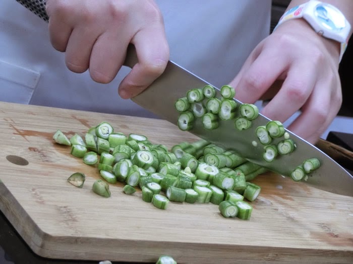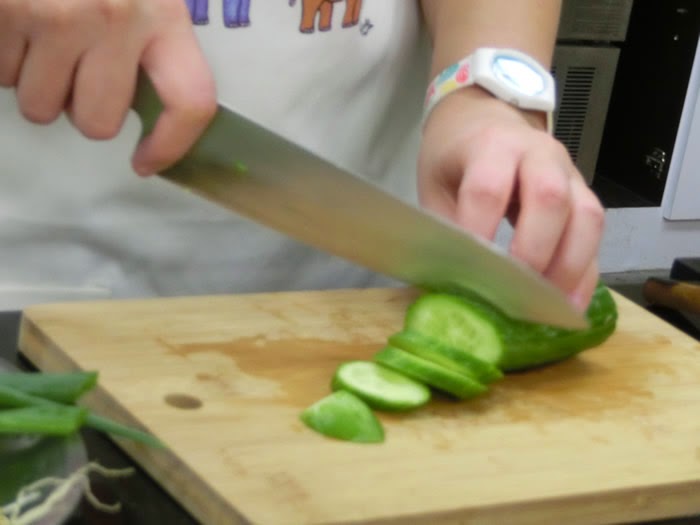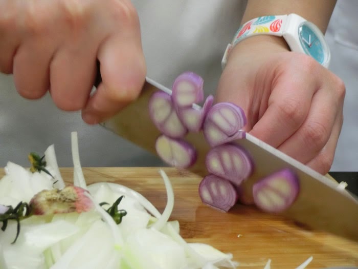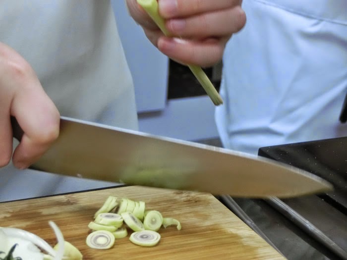 老師邊切菜,也邊分享製作涼拌海鮮冬粉,