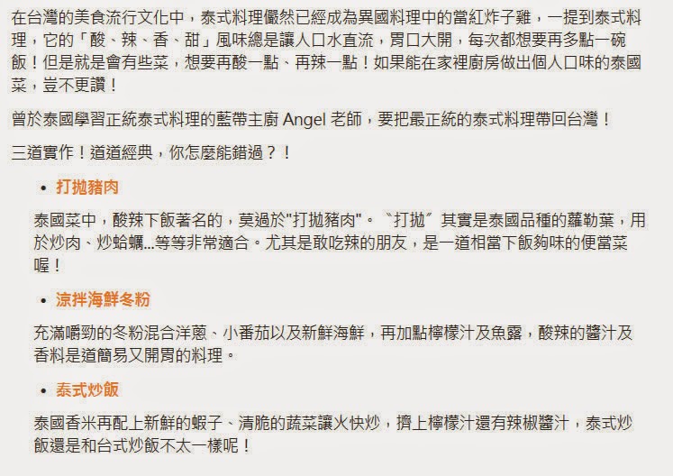 在課程網站中,看到3/7有堂"打造經典泰美味料理",